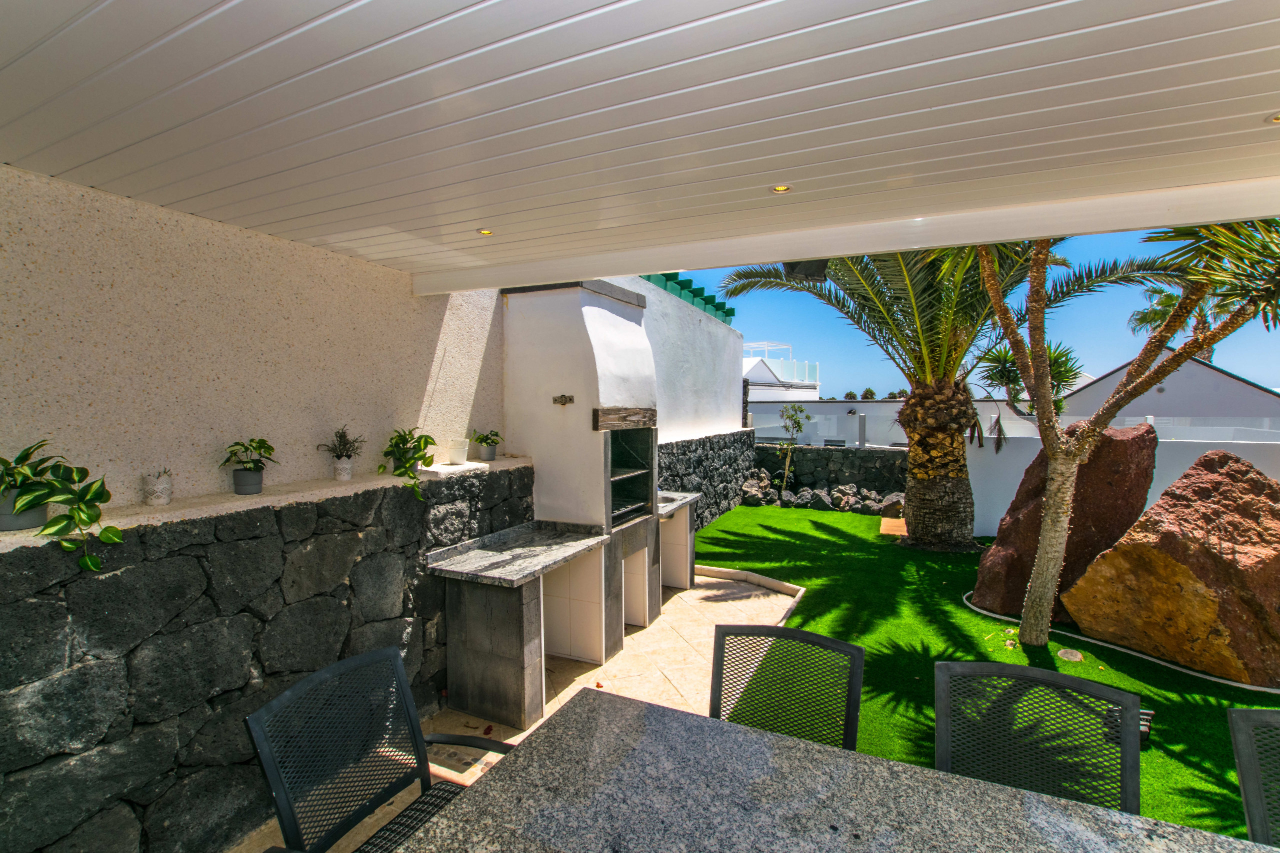 La propiedad, tiene una piscina privada y climatizada, Jacuzzi, terraza para tomar el sol, barbacoa de estilo canario, 2 grandes sombrillas, 8 cómodas tumbonas, 8 sillas y 2 mesas exteriores además de una mesa de billar y otra de futbolín.