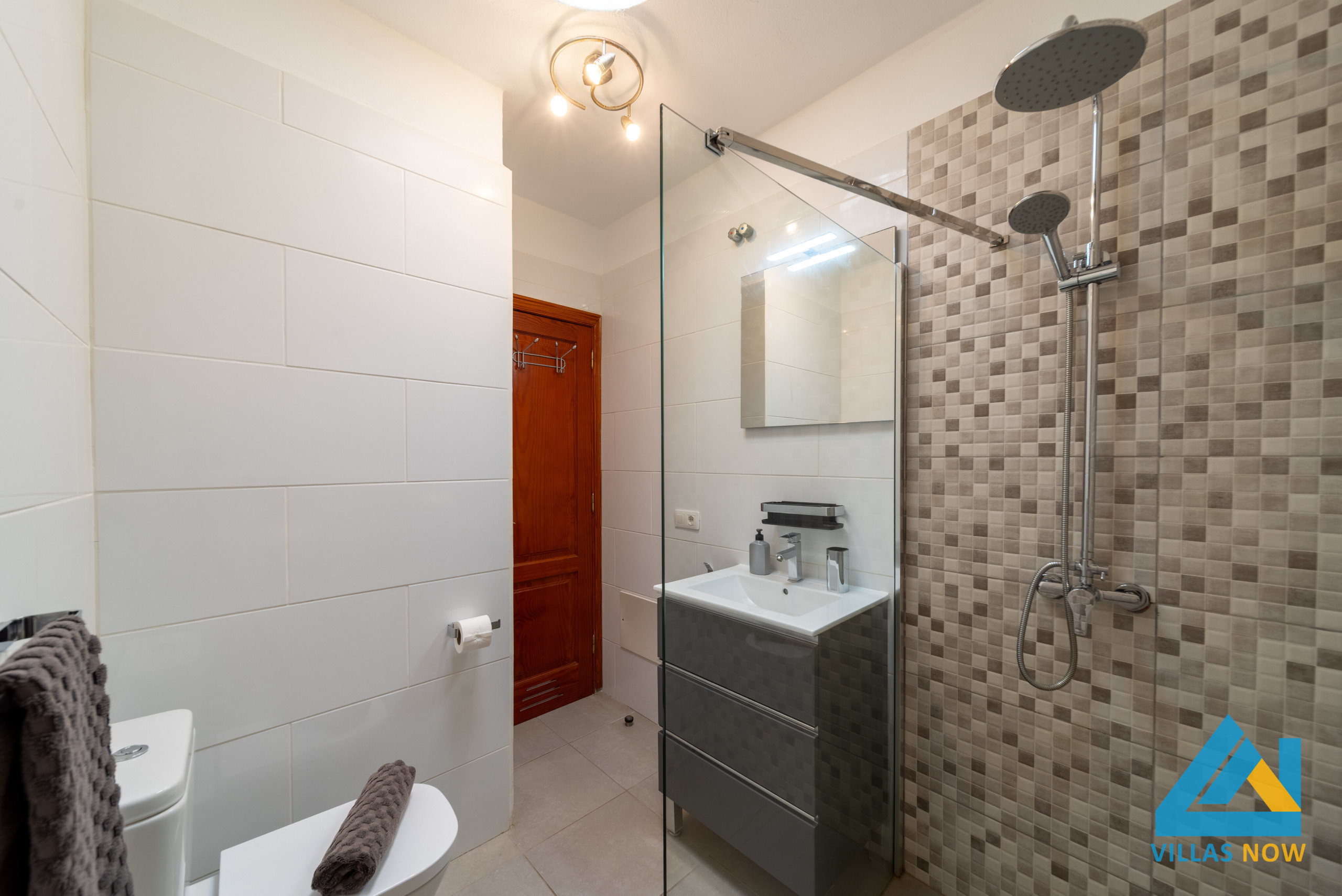 La deuxième chambre est une chambre double avec salle de bain. Les deux chambres ont une climatisation réversible (fonctionnement à pièces). Cette chambre a également accès à la terrasse supérieure.