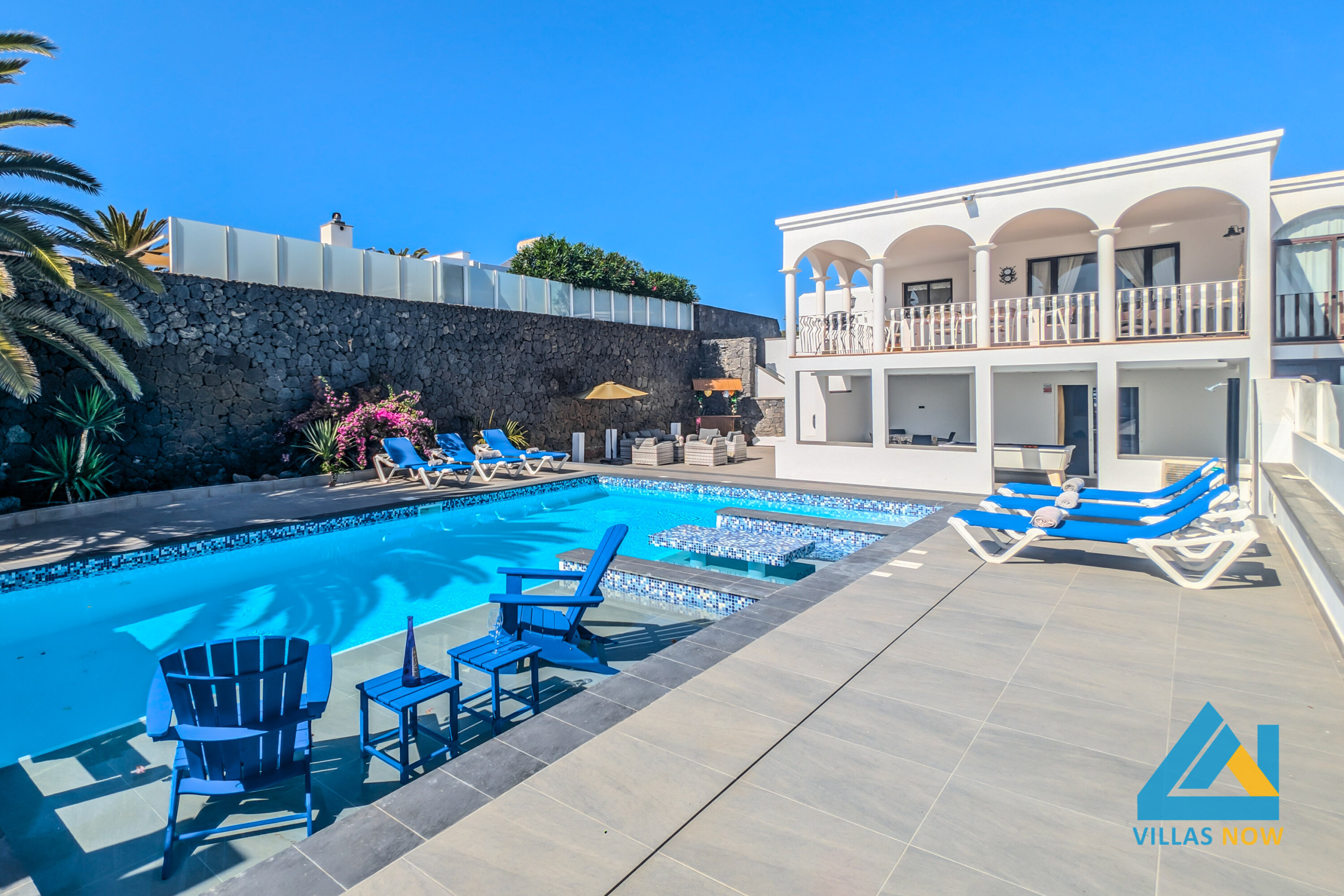 This villa is very well equipped and spacious, very comfortable beds, amazing terraces on both ground and first floor levels with fantastic views across to Fuerteventura. Pool is a lovely temperature and garden has beautiful planting, comfy Sun beds plus