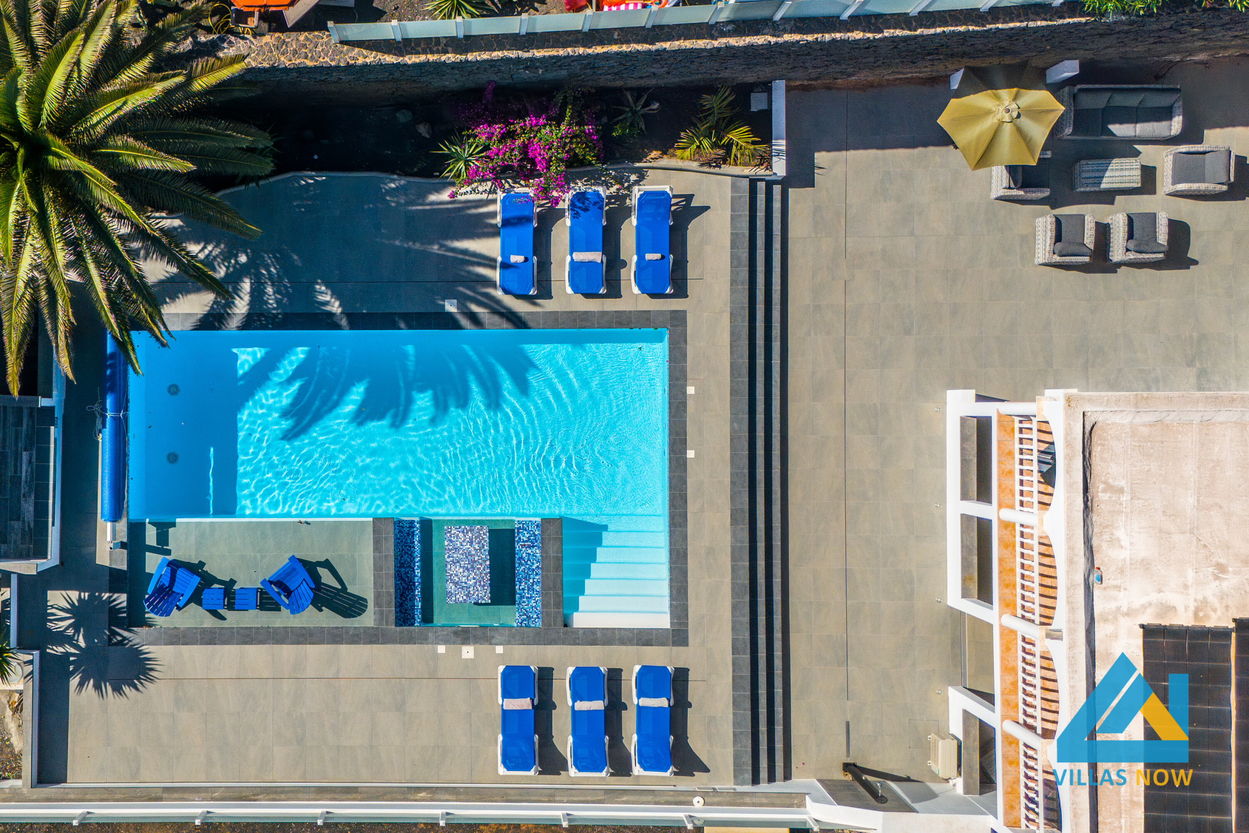 Si vous aimez la baignade, la villa possède l'une des plus grandes piscines privées de villas (11x4 mètres). Chauffé toute l'année par des panneaux solaires, il y a aussi un chauffage d'appoint (moyennant un supplément) pendant les mois d'hiver plus frais. Autour de la piscine vous trouverez de beaux jardins de style tropical avec un système son-et-lumière automatique chaque nuit! Au bord de la piscine, il y a un grand barbecue canarien.