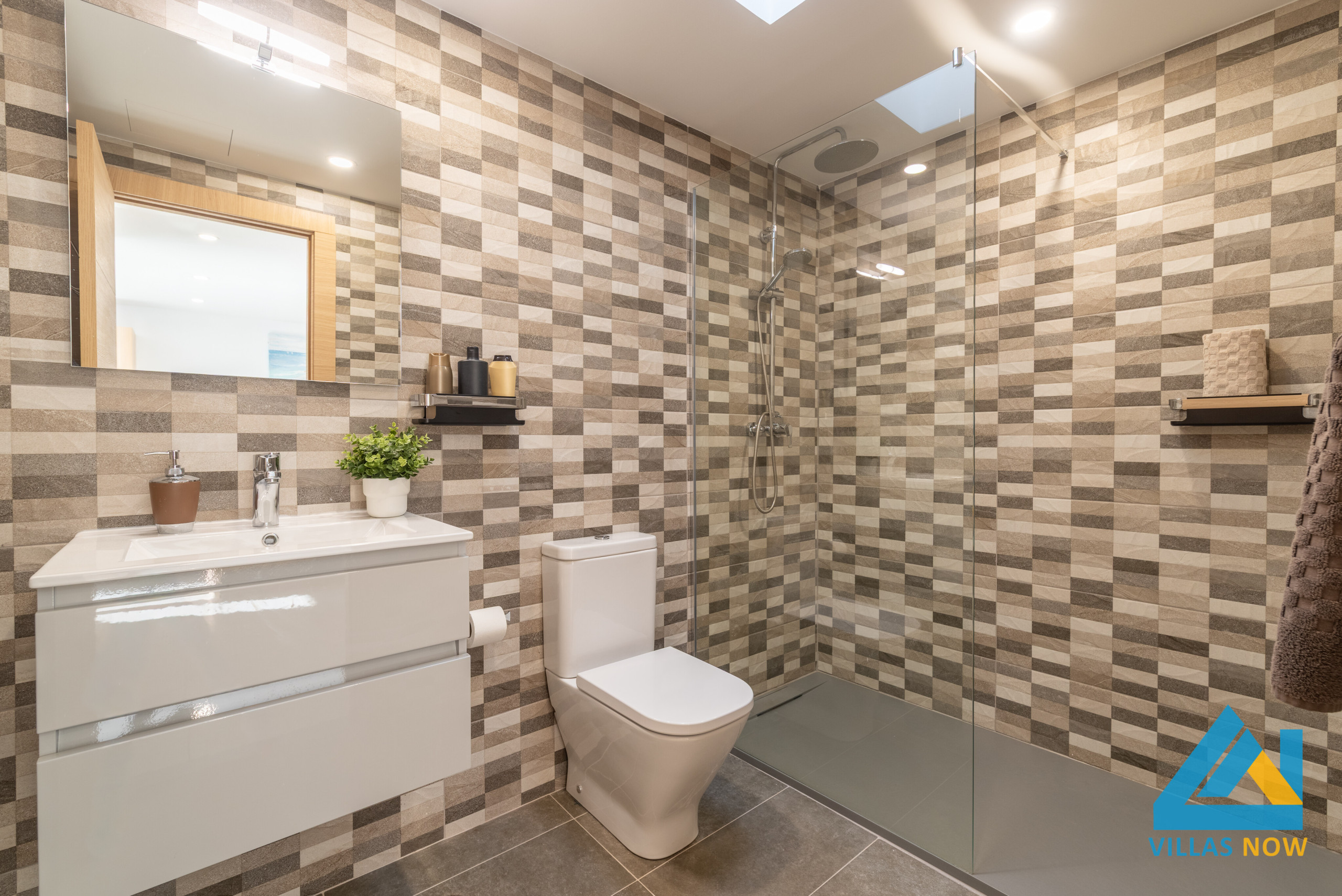 La deuxième chambre est une chambre double avec salle de bain. Les deux chambres ont une climatisation réversible (fonctionnement à pièces). Cette chambre a également accès à la terrasse supérieure.