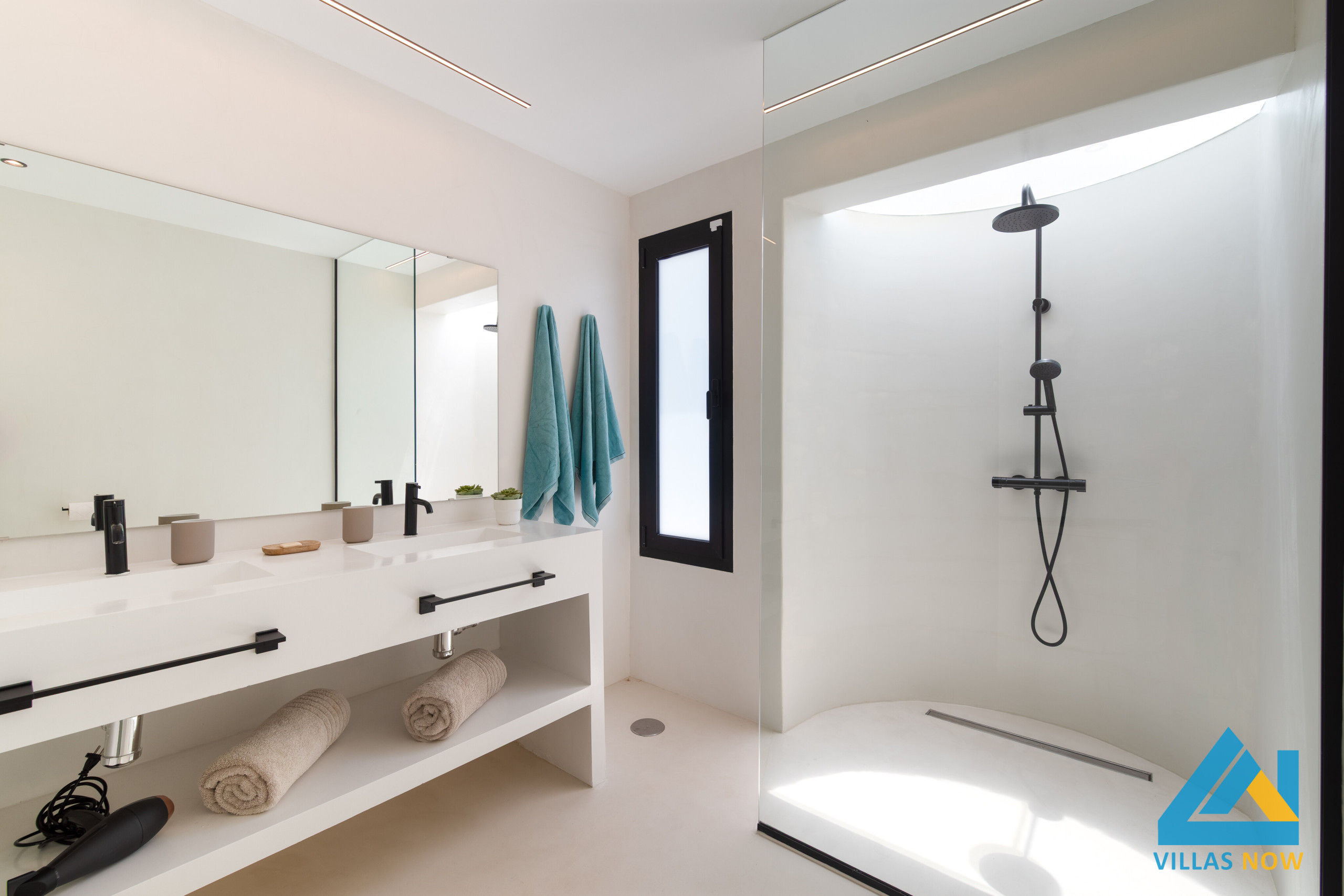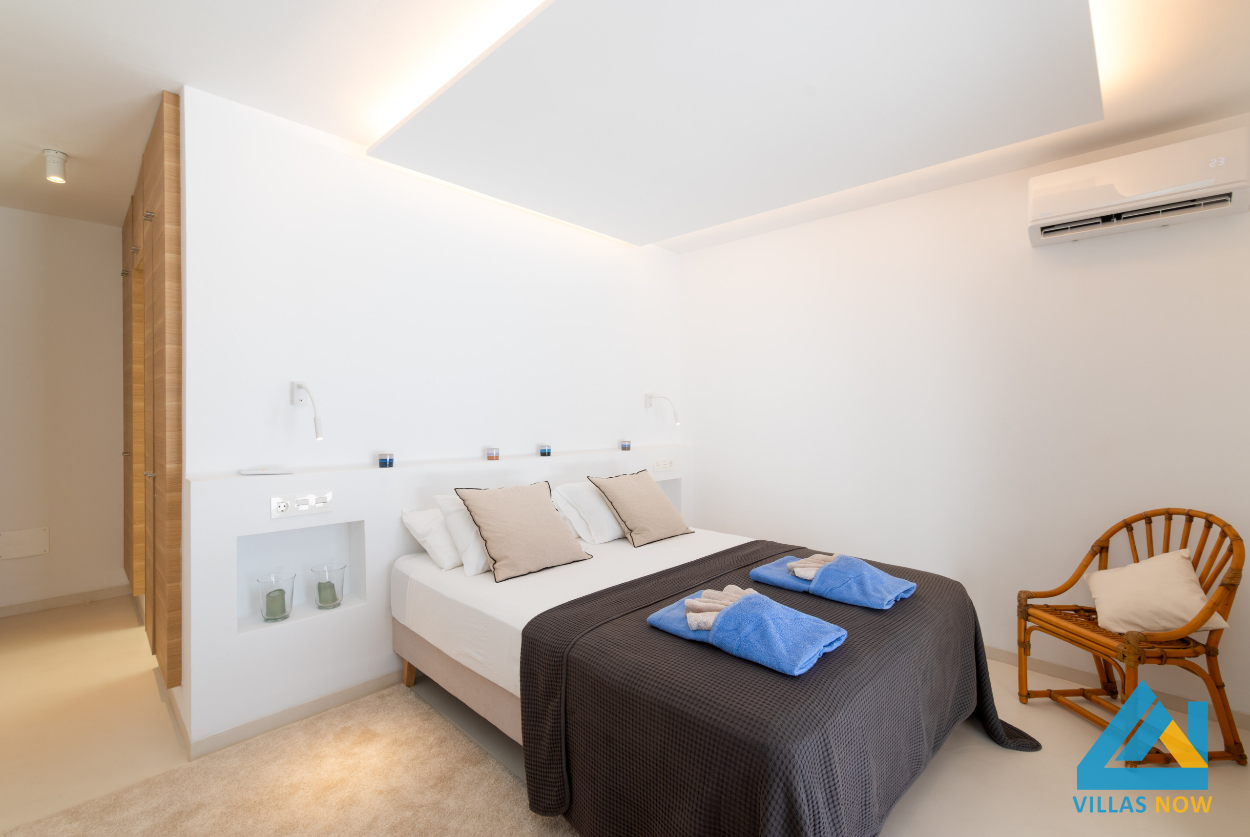 There are three generous bedrooms, each with a king-size bed, and two luxurious bathrooms that feel more boutique hotel than holiday home. Two of the bedrooms open directly onto the terrace — perfect for a quiet morning coffee or a sunset glass of wine.